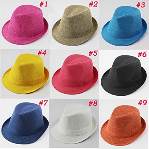 Kids Linen Fedora Hats Short Brim Panama Sun Hat Jazz Trilby Cap 6