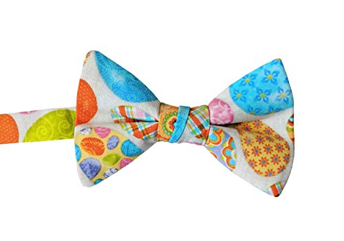 • HANDMADE ADJUSTABLE BOW TIE: This Easter designer neckwear is crafted especially for your Spring time celebrations and everyday throughout this holiday season! Crafted in a white with a striking design of Easter eggs in purple, blue, orange, yellow, pink and lime green which makes it is the perfect piece to complete your special celebration!