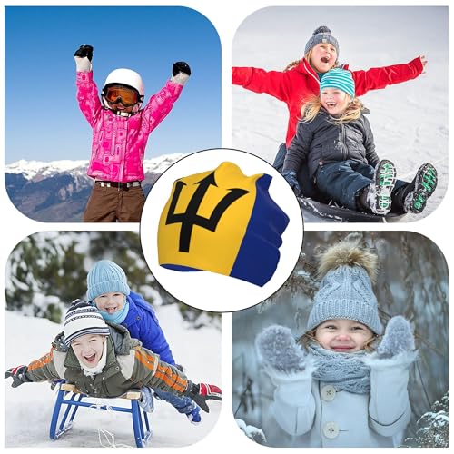 Flag of Barbados Children Hip Hop Knitted Hat Kids Elastic Leisure Knit Cap Warm Sleep Beanies Black 4