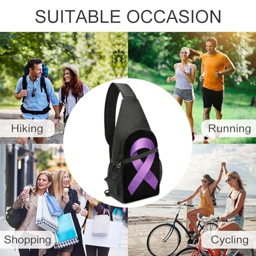 Purple Awareness Ribbon Crossbody Sling Bags Chest Shoulder Backpack DayPack Handbag 4