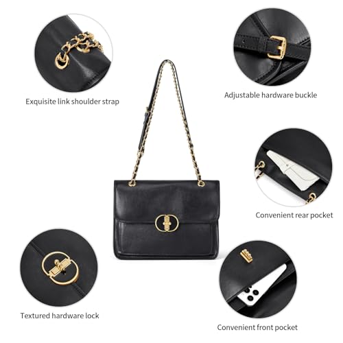 • MATERIAL: The shoulder bag is made of high-quality genuine leather and eco-friendly Vegan Leather which's polyester lining. The crossbody bag has strong rotating botton, flap is easy open and close.The golden chains feature high quality hardware that will never fade.