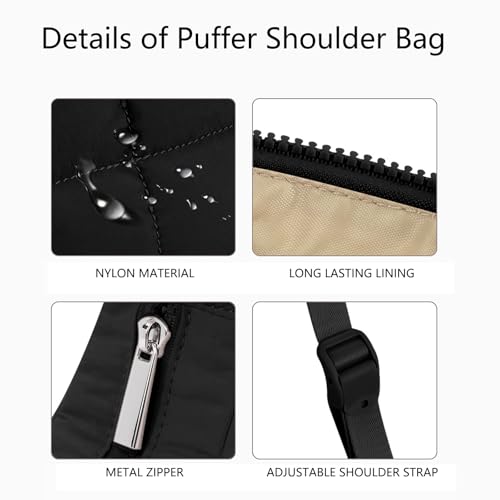 Small Puffer Bag, Crescent Shoulder Bag for Women,Nylon Quilted Tote Handbags with Adjustable Strap 4