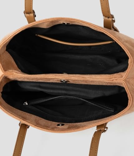 • Stylish Design: This women's faux suede tote bag features classic colors, a chic decorative charm, and a magnetic snap closure,and it works perfectly as an underarm bag, making it a must-have for all stylish ladies