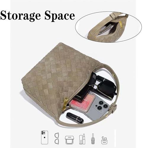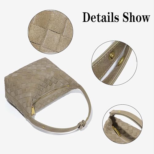 Woven Purse for Women Suede Leather Shoulder Bag Vegan Tote Bags Suede Hobo Top-Handle Handbag 7