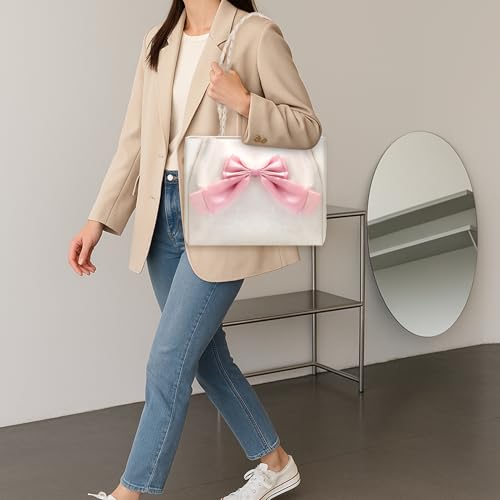 • IDEAL GIFT: Bow structured tote bag used in our daily life, with pink bow decorative accessories, forming a bow small bags bags for women, is a use beautiful y2k tote bag, suitable as a birthday gift for women, Christmas gift, this ladies oversized tote bag is simple in use, easy to store, a comfortable kawaii tote bag gift.