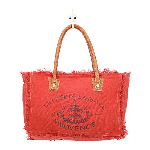 HOT ! Myra Bag Carroty Upcycled Canvas & Leather Handbag S-1484, Red, Width 14in, Depth 5in, Height 10in, Handle 8.5in for Women