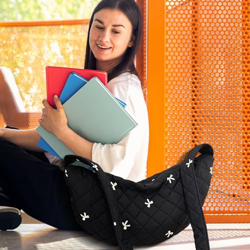 HOT ! Bow Embroidered Sling Bag, Crossbody Bags for Women with Pocket & Zipper, Puffer Tote Bag with Shoulder Strap