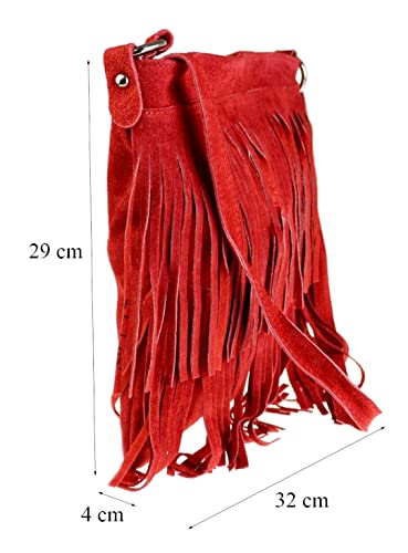 • New genuine italian suede shoulder bag with fringe details on the front.