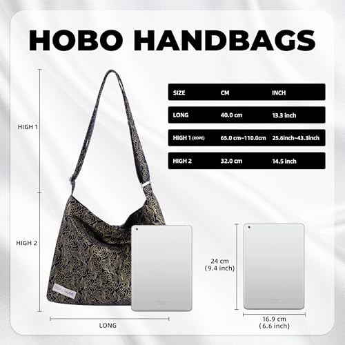 • 【Hobo Tote Bag Size】 13.5 inches (L) x 14.55 inches (H). Perfect size can easily hold your cell phone, wallet, ipad, folding umbrella, magazines, etc. to keep your belongings organized.