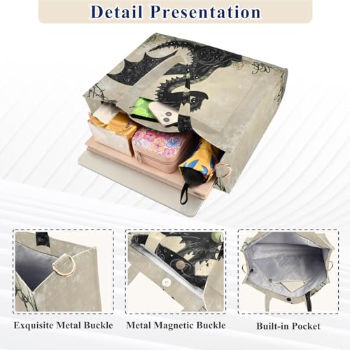 HOT ! Shoulder Handbags for Women Black Gothic Dragon Print, Corduroy Tote Bag Large Capacity Small Size