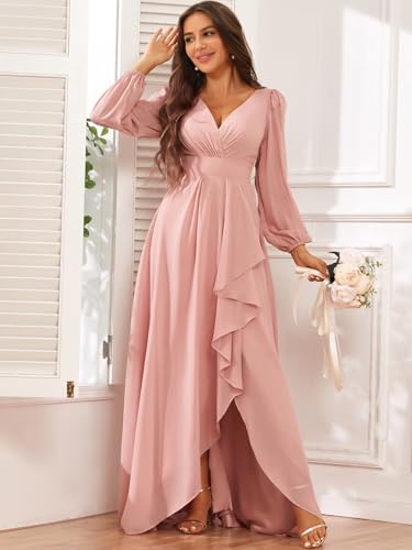 • FEATURES:Featuring bridesmaid dresses,mother of the groom dresses,wedding guest,formal evening gown,prom dresses,maid of honor dress,floor length/long,a line,v neck,long sleeves,side slit, lace up back.