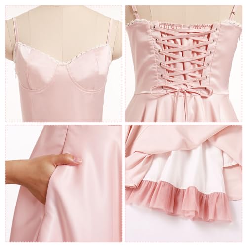 ODIZLI Women's Satin Short Corset Mini Short Dress Sleeveless Sweetheart Neckline Ruffle Party Dress Summer with Pockets 5