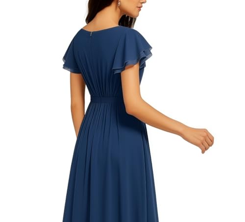 Women's Scoop Neck A-Line Formal Cocktail Party Dress Ruffle Sleeve Elegant Long Wedding Guest Dress 4