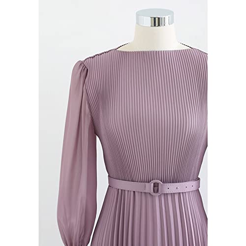 • [ Style Details ] Yes, girl! Come forward and take a good look at this maxi dress! This maxi dress features long sleeves with semi-sheer chiffon sleeves and belt accompanied. The full pleated design is fabulous and we are in love with that flattering fit!