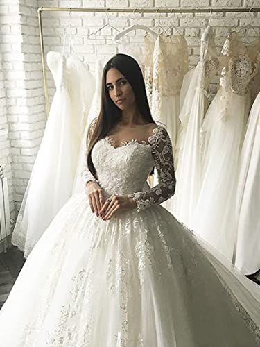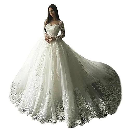 More information about XYAYE Long Sleeve Wedding Dresses for Bride Lace Applique Modest Wedding Gowns with Train Bridal Dresses for Women