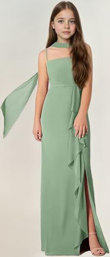• Exquisite design: A line floor length girls quinceanera dresses,high-waisted design,side slit,ruffle chiffon junior bridesmaid dresses with scarf,spaghetti straps vestidos para niñas elegantes