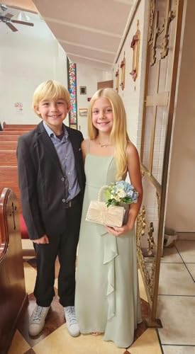 Junior Bridesmaid Dresses with Scarf Spaghetti Straps Flower Girl Dress for Wedding Prom Gown 6