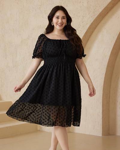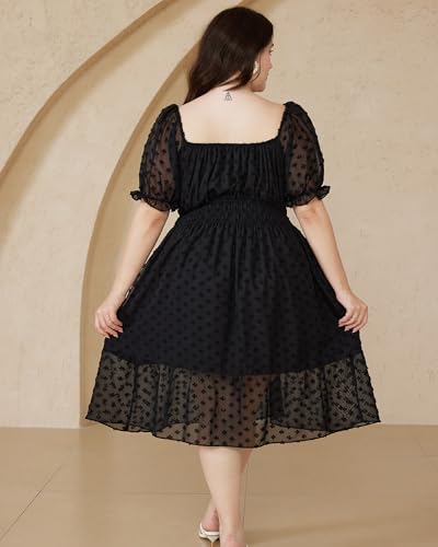 2025 Women Summer Plus Size Dresses Swiss Dot Puff Sleeve Square Neck Smocked Beach Vacation Flowy Tiered Dress 4