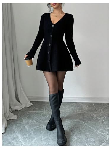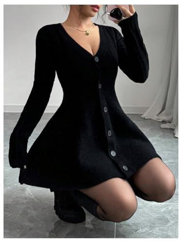 SOLY HUX Women's Sweater Dress Button Down V Neck Long Sleeve Knit A Line Mini Dresses 6