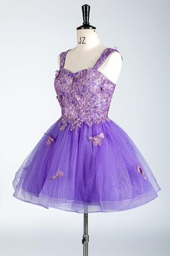 • Feature: Off Shoulder 3D Butterfly Lace Homecoming Dress for Teens,glitter tulle,lace butterfly appliques,sweetheart neck,lace up back,build-in bra,above knee length.