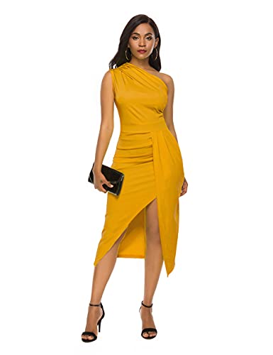 Nature Comfy Womens Elegant one Shoulder Sleeveless Ruched High Slit Solid Color Cocktail Party Dresses 6
