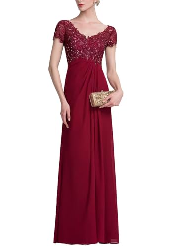 • 【✨Features】Floor length mother of the bride dress with short sleeves,mother of the bridal dress long,chiffon formal evening gowns,v neck,lace appliques,features an A-line silhouette,floor lenth, built-in bra,zipper back,beaded,pleats,and full lining for both comfort and support — a graceful and timeless option for formal occasions.
