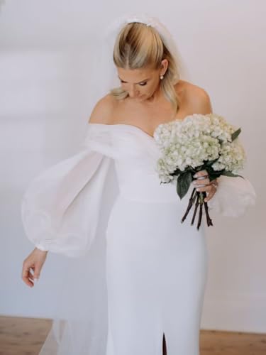 More information about SHANDUAO Beach Backless Wedding Dress for Bride Mermaid Satin Off The Shoulder Bridal Gowns for Wedding Sleeveless Bridal Dresses with Bow White Size 12