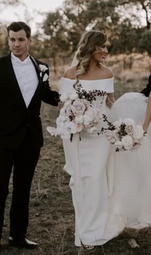 HOT ! SHANDUAO Beach Backless Wedding Dress for Bride Mermaid Satin Off The Shoulder Bridal Gowns for Wedding Sleeveless Bridal Dresses with Bow White Size 12