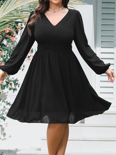 • Features: This plus size Mini Chiffon dress for curvy women features a V-neck, long sleeves, an empire waist, an A-line hem, and an elegant hem, making it wearable in spring and summer
