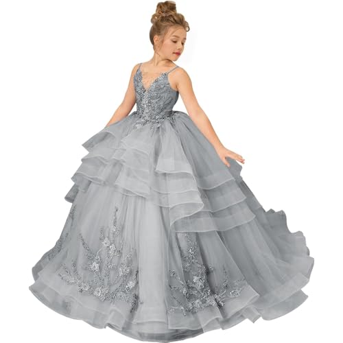 Flower Girls Dresses for Wedding Tulle Pageant Princess lace Appliques Girl Wedding Guest Dress 5