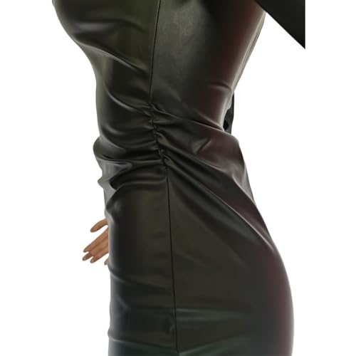 Women Long Sleeve Slim Pu Leather Dress Bodycon Mini Dress Party PU Clubwear Women Sexy Deep V Neck Mini Party Dress 4