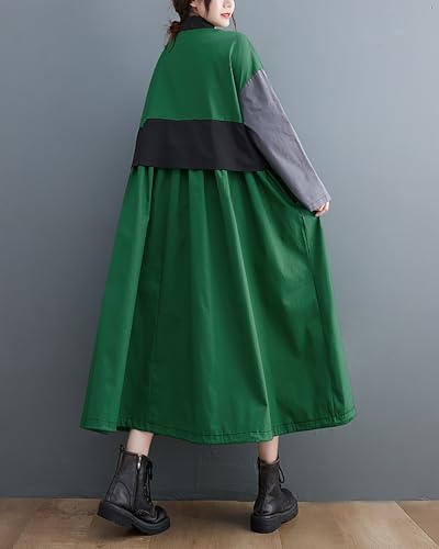 More information about ellazhu Women's Shirt Dress Button Down Lapel Color Block Two Side Pockets Loose Oversize Fall GZ246