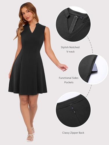 • 【FIT LIKE A GLOVE】: Fit and flare aline short party dresses for women elegant classy petite very cute well cut and hugs your curves perfectly. Women vneck sleeveless casual mini short sundress very flattering fit — true to size. Length is above the knees. It is the perfect length to wear out. Easily dress up or down to your sun-drenched afternoon picnic. The great women a line little black dress with pockets have a elegant feminine look, making every woman look effortlessly chic and feminine.