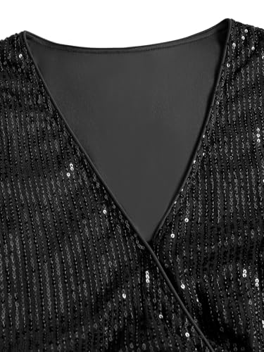 • The glitter design of this bodycon dress can make you shine in every occasion and become the most eye-catching existence. The semi sheer puff sleeves perfectly shows your body curves and releases your charm. Sexy wrap V neck design make you more unique and stunning in the crowd.