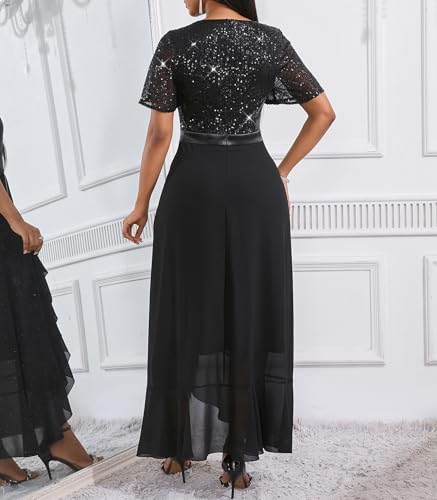More information about Cololura Women Sexy Sequin Lace Tulle Short Sleeve Chiffon Bodycon Cocktail Formal Evening Maxi Dress