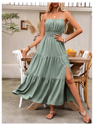 • Features: Sleeveless, layered, split hem, shirred, ruched, solid color, long dress, 2025 summer dress for women