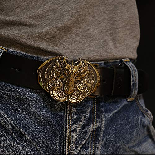 More information about Leather belt with Dragon belt buckle, Handmade scandinavian old norse mythology Fafnir dragon solid brass belt buckle on leather belt
