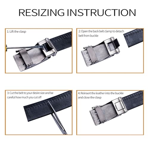 Barry.Wang Leather Ratchet Belt Tie Set Men Sliding Black 35mm Wedding Dress Formal Business,Trim To Fit 2