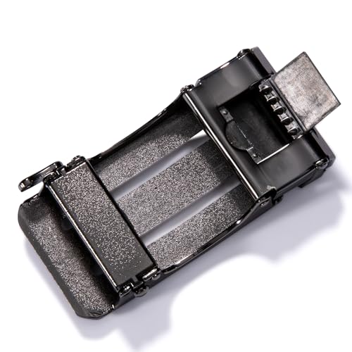 • ④Easy To Use - Just slide the belt into the buckle and pull the belt through, the buckle simply auto locks the belt, to release the belt, gently push the lever on the side of the buckle and lock will snap. Simple, smooth and sleek!