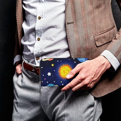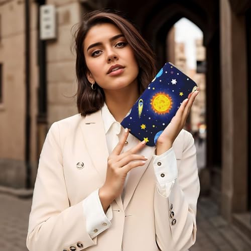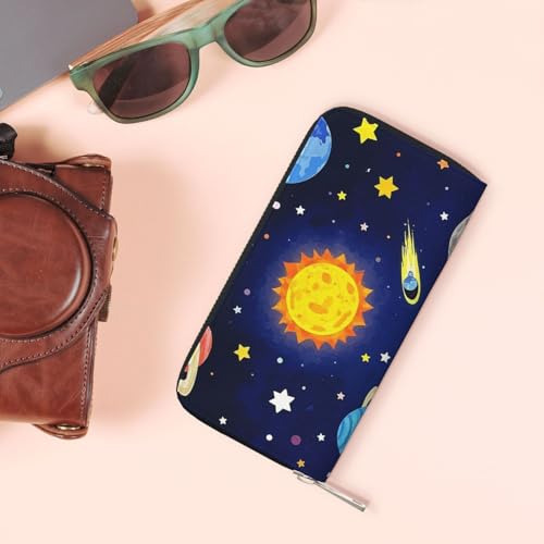 HOT ! Illustration Of The Solar Universe Leather Wallet For Women Girl, Zip Around Credit Card Holder Long Pu Wallet Clutch Purse Waterproof Travel Handbag
