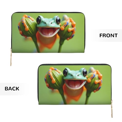 HOT ! Wallet Women - Realistic Frog Print Leather Wallet for Women with Zipper, Cute Bifold Long Ladies Wallets
