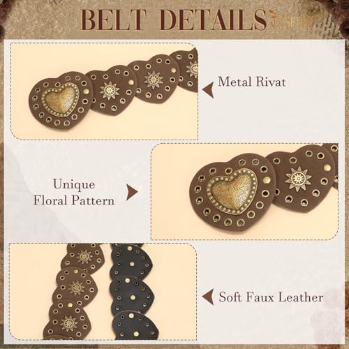 JASGOOD Western Belts for Women Wide Hollow Disc Leather Belt Cowgirl Waist Belt for Jeans Dresses with Metal Buckle 2