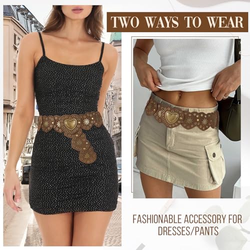JASGOOD Western Belts for Women Wide Hollow Disc Leather Belt Cowgirl Waist Belt for Jeans Dresses with Metal Buckle 4