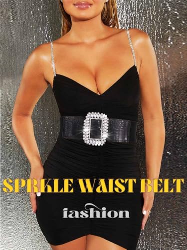 Yalice Rhinestone Dress Belt Black Wide Elastic Waist Belts for Women Sparkle Thick Stretchy Belts 1