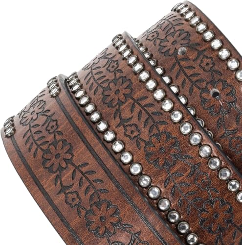 Womens-Rhinestone-Studded Western-Cowboy-Cowgirl-Belt Flower-Buckle Waist-Belt for Jeans Pants(28"-38") 5