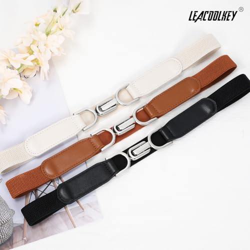 More information about LEACOOLKEY 3 Pack Women's Stretchy Waist Belts Retro Ladies Alloy Buckle Elastic Belt for Dresses