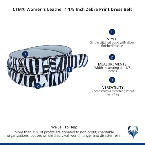 More information about CTM Women's Leather 1 1/8 Inch Zebra Print Dress Belt