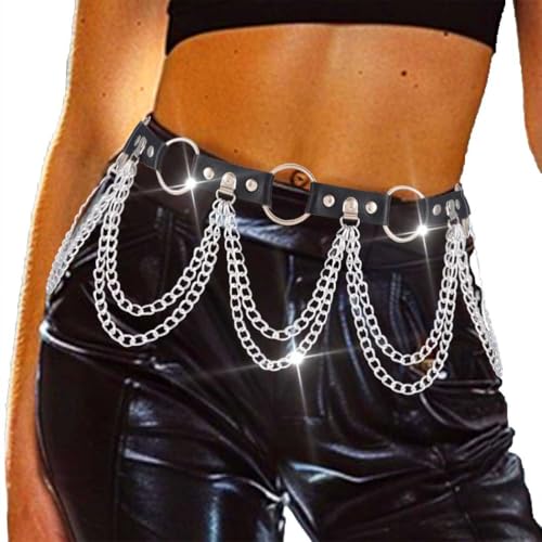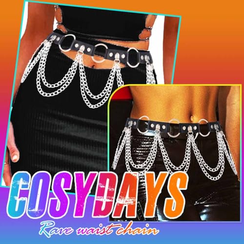 More information about COSYDAYS Goth Chain Belt Black Leather Waist Chain Rave Body Chains Jewelry for Women