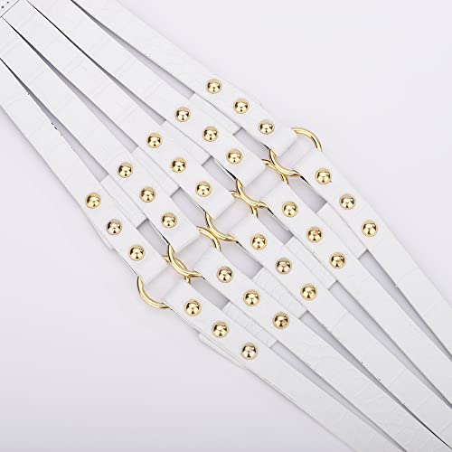 Wiwpar White Corset Belt for Women Fashion Retro Goth Underbust PU Leather Wide Waist Belt Stretch Cinch Waistband Mother's Day Gifts Halloween Decor Belt Gifts for Party Wedding (White) 5