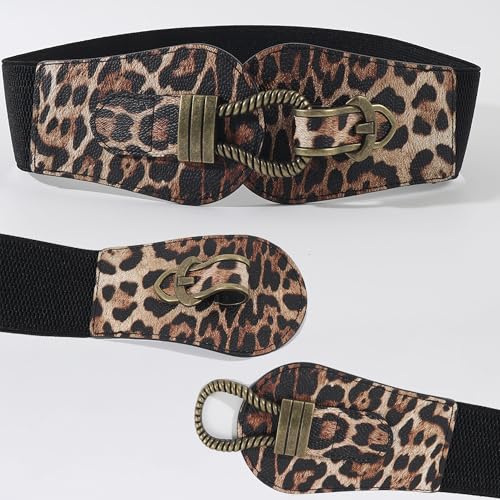 IZUS Women's Retro Stretchy Belt 2.35in Wide Slimming Waist Strap with Bronze Interlock Buckle for Coats/Dresses 1
